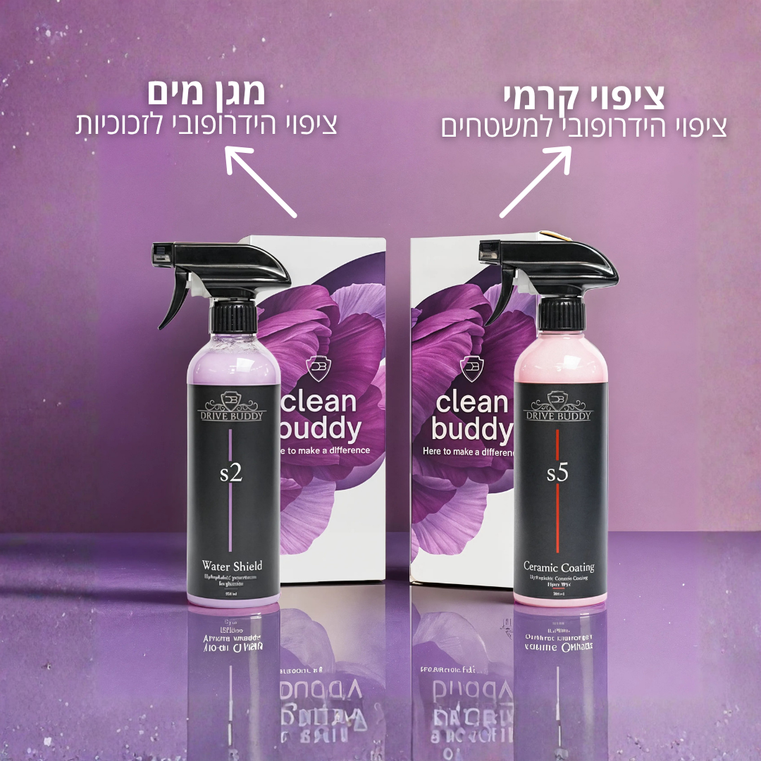 🛡️ מגן מים (500 מ״ל) – יוצר שכבת הגנה דוחה מים ואבנית, שומר על הזכוכית נקייה ומבריקה למשך 3 חודשים.